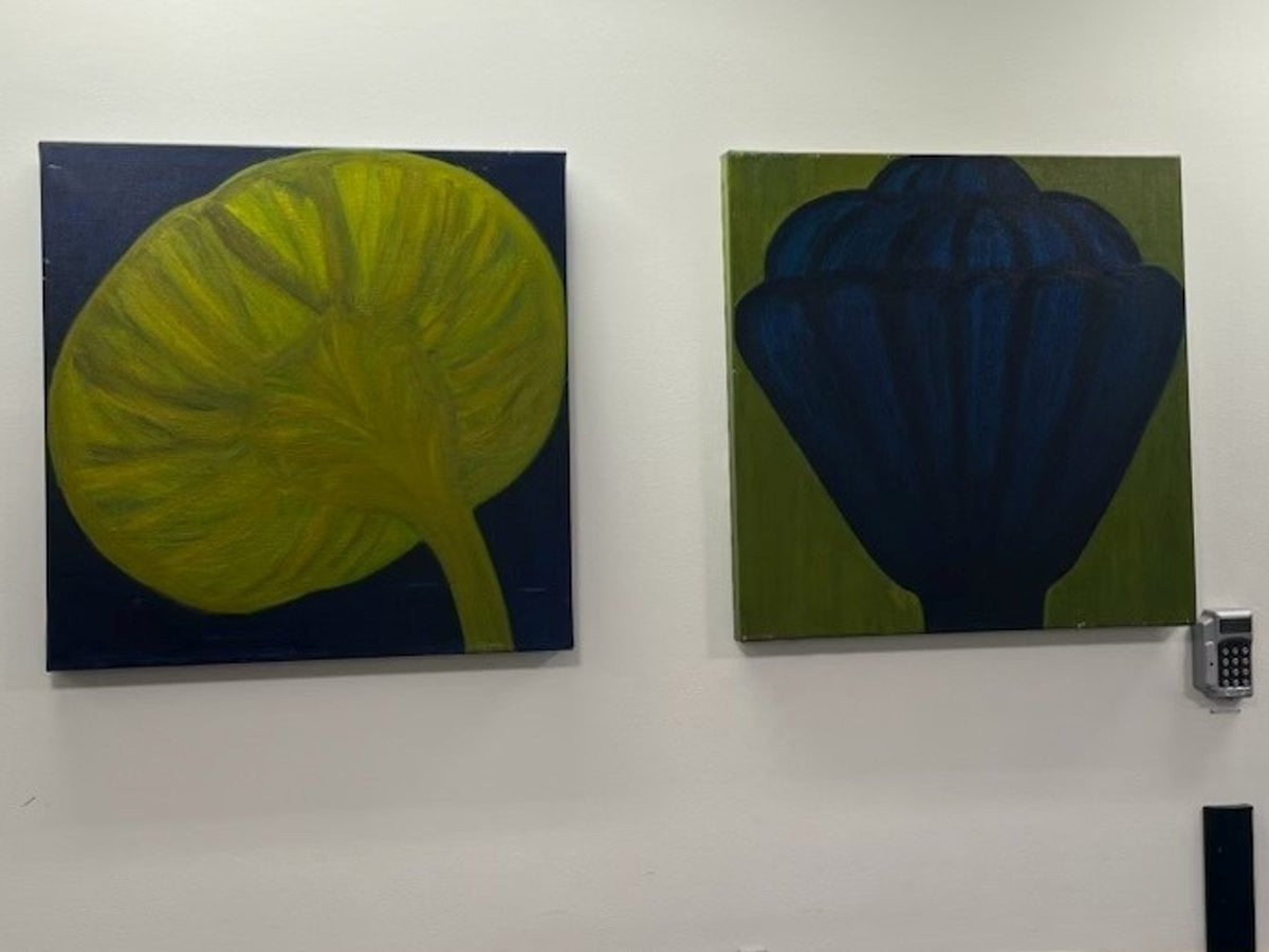 Blommor och frökapslar på Karolinska Huddinge. På plan 4, hus C1 hänger Den ceriseröda blomman (1995), en samling bestående av sju verk målad av Barbro Andersson. I hisshallen på plan 4 möts besökaren av färgsprakande motiv utspridda längs väggarna, gestaltat som blommor eller frökapslar i varierande färg och form.