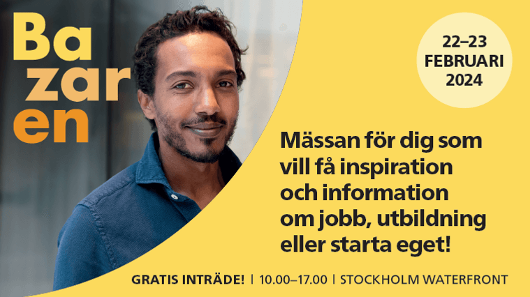 Den 22–23 februari kan den som vill stärka sin position på arbetsmarknaden besöka Stockholm Waterfront Congress Centre. Då är det nämligen dags för Bazaren, Sveriges största jobb- och utbildningsmässa som varje år lockar drygt 12 000 besökare.